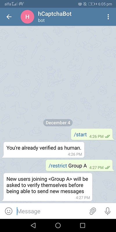 2. Ask the bot to restrict the group. It does not start restricting users until you enable it.