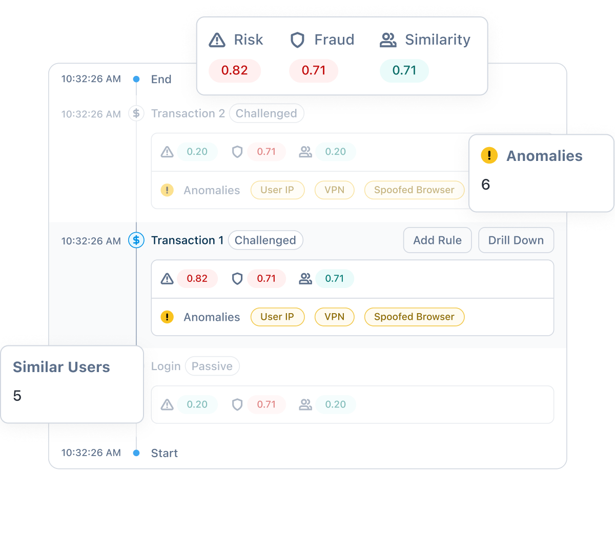 For transactions that require a deeper analysis, our analytics, real-time insights, anomaly views, and SOC assistance provide your team with everything they need to surface abuse, investigate, and validate suspicions.